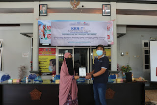 Penyerahan Cinderamatan KKNt Umsida tahun 2021 dari Dosen Pembimbaing kepada Sekdes Gemurung